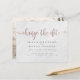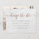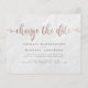 Yikes! Oförutsedda omständigheter är svåra att planera för, men med dessa senareläggningskort i bröllop kan du enkelt låta dina nära och kära veta! Med en vit marmorbakgrund. "Ändra datum" på ord visas överst i ett faux-folie av ro guld med söta virveler. Som en del av budgetvalet här om Zazzle, bjuder dessa in kom i begränsada storlekar och pappra lagrar. Om du behöver ett annat storlekt eller pappert lagrar kan du överföra den här designen till ett standardformat 5x7 med hjälp av verktyg för designöverföring för fler alternativ.