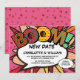 Anpassa med dina namn och detaljer för att tillkännage datumändringen för ditt speciella evenemang. Tecknad serie pop art-tema modern, rolig retrodesign, perfekt för bröllop, bröllops shower, baby shower, dop, förlovningsfirande, årsfirande, examina, födelsedagsfirande och andra speciella evenemang under året! En cool, trendig och rolig design som sätter BAM! i din dag. Designad av Thisisnotme©