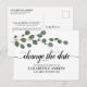 Enkel minimalistisk ändring av datum Grönska Eukalyptus Elegant skript typografi Bröllopsförsening Annons Kort