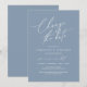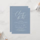 Det här är inbjudan till Bröllopsfesten Omschemaläggs, spara vårt nya datumkort (senarelagt/senarelagt) (Ändra datum), i det moderna, minimala, rena romantiska blåa designtemat. Det är det perfekt sättet att göra evenemanget till en tidtabell för tillkännagivandet till dina vänner och familj.