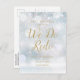 Ändra datumet Vi gör om bröllop för att uppdatera nya plankort med ett skript för elegant guld som ligger över dina uppgifter i modern typografi på en snöflingor vinterfrostbakgrund. På motsatt sida finns ytterligare information, inklusive webbplatsen bröllop, med returadress och utrymme för mottagarens adress. Designad av Thisisnotme©