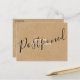 Detta eleganta rustika kraftkort för datumändring kan personifieras med din information om uppskjutande. Baksidan har ytterligare detaljer, inklusive din webbplats, med din returadress och utrymme för din mottagares adress. Perfekt för bröllop, bröllopsdusch, baby shower, dop, förlovningsfester, årsdagsfiranden, examina, födelsedagsfiranden och andra speciella evenemang under hela året! Designad av Thisisnotme