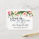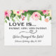 Ändra datumkortet för ett bröllop med blommigt gräns och "Kärlek är patient... mycket, mycket patient" som text längst upp. Grund två linjer kan ändras för att säga vad ni vill om er ändring av datumet i bröllop. Byt datumkort för bröllop, spara datumkortet, ändra datumkortet, ändra datumkortet för bröllop, bröllop spara datum-kort