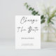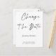 Den här anpassningsbarna är ett modernt och enkelt sätt att ändra datumkort är ett elegant för att meddela dina gäster om din ändring av datum. De moderna designfunktionerna Ändra datum, ord, namn och speciellt datum i skript och fet typografi. Baksidan har en anteckning till din familj och dina vänner. Klicka på "Anpassa den här mallen" om du vill ändra alla formuleringar till dina egna. Se vår andra matchande design i vår butik. Om du behöver hjälp med anpassning eller speciella förfrågningar kan du skicka e-post till dig på gmail.com. Tack för att du stannar på www.zazzle.com/Personal_Creations. ©Karen Hall för Personal_Creations på Zazzle.