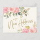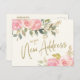 Elegant rosa och guld vattenfärgsfärgad blommigt med sage grönt löv och grön på byte av adress/flytta-färgad-vykort. Texten på kortets framsida säger: "Vi har ett ny adress." Baksidan har ert adress och ert eget speciella budskap. Berätta för alla dina vänner och din familj att du har flyttat.