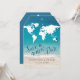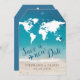 Ett turistbröllop på destinationsstranden CHANGE DATE-meddelande i form av ett bagagemärke med en världskarta och ett rörligt hjärta som du kan ställe på just din plats i bröllop och en avslappnad sandstrand och havets bakgrund bild. Vårt romantiska hjärtflygplan accentuerar utformningen, och du kan lägga till din bröllop webbplats på baksidan så att gästerna kan börja planera sin resa till din unika plats i äventyr bröllop. Perfekt för när du var tvungen att skjuta upp förseningen eller ändra schemat för bröllop på grund av reserestriktioner eller logistiska situationer. Färg i karta, hjärta, text och flygplan kan ändras i den avancerade redigeraren och klicka bara på "anpassa ytterligare".