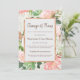 Dessa kort för ändring av planer kommer att hjälpa dina gäster att navigera de nödvändiga ändringar du har gjort för din händelse. Anpassa med din händelseinformation för att skapa en unik ändring av planer som dina vänner och familj säkert kommer att uppskatta. Designad med en vattenfärg blommig design med moderna typsnitt, både fram- och baksida.