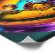 En pulserande virvelströmning av färg skapar en sfärisk abstrakt med många-reflekterande bubblor. Användan av lila, grönt och gult gör ge till en glans, annars känns det globalt.