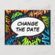 Anpassa till namn och information för att meddela att du har ändrat datum för din speciella händelse. Tecknad bok popkonst temat modern, roligtens återdesign, perfekt för bröllop, möhippor, babyduschar, baptismer, förlovningsfester, årsdag firande, studenten, födelsedagsfest och andra speciella evenemang under hela året! En coola-, trendig- och roligt-design som sätter in den vita fläcken på din dag. Designad av Thisisnotme©