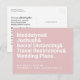 Meddelande om vykort som ska skickas när ditt målbröllop har skjutits upp, schemalagts om och omplanerats på grund av att social avstånd och reser. Den roliga, moderna textdesignen på ampersand kommer att framträda i postmeddelandet i ro guld rosa och vit med mörk grått text på baksidan med roligt typografi. Bakgrunden färg och typsnitt är redigerbara. Klicka bara på "anpassa ytterligare" om du vill redigera mallen på det sätt du vill.