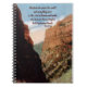 Anteckningsbok som visar en vintage rälsbild av andra tunneln i Royalet Gorge Canyon i Colorado 1914. Ord, "Den Gud som skapade världen och allt i den är himmelens och jordens Gud och lever inte i tempel som byggts av mänskligt händer." Rättsakter 17:24 står på framsidan.