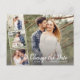 Skicka det här vykortet för snyggt när du har bytt bröllop-plan. Vykortsfunktioner 4 av dina favoritfoton och din anpassningsbar på framsidan och baksidan. Enkel och roligt, snyggt och elegant - koordinerar på ett utmärkt sätt med så många av dagens bröllop stilar.