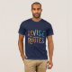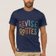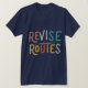 T-shirt-designen visar frasen "Revise Routes" i en dynamisk visning för multifärgad. Varje brev brinner med ett annat färg och ger en känsla av anpassningsförmåga och öppenhet när det gäller att utforska nytt väg.