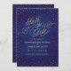 Shimmery guld-effektens polka-punktstjärnornas gnistra i konfektmoln mot en förstorande blå och lila vattenfärgens himlar bakgrund i detta Spara datumkortet, med ett guld-glitter-effektskript som läser "Spara datum". Finare, chic och förtjusning på gång. Originalteckningar av Colleen Michele. Observera att det inte finns någon verklig effekt på stjärnorna och manuset i guld eller guld, och att inget glitter, guld löv eller metalliskt bläck kommer att användas i denna inbjudan.