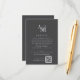 Personalisera din bröllopsinbjudan detaljerkort med din bröllopswebbadress och QR-kod så att gästerna enkelt kan svara online.