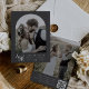 Denna moody, klassiska grått mörk-akademia bröllop spara datum från Andrea-samlingen är perfekt för ett modernt bröllop. Mörken och eleganten har ett finare-skript i monogram i grått och vitt med en unik moody känsla. Anpassa framsidan av dina datumkort med ett foto, ditt monogram, namn och bröllop. Anpassa baksidan med ett annat foto, din bröllop webbplats adress och en QR-kod som gör det enkelt för dina gäster att få mer information om din stora dag.