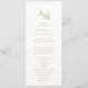Detta enkla formella bröllopsprogram från Andrea Samlingen i guld är perfekt för ett modernt bröllop. Tidsbegränsningen och utformningen av eleganten har ett finare-skriptmonogram i guld och vitt med en unik industrikänsla. Ta med parets namn, datum och plats för bröllop, tack, serviceordning, bröllopsfest och ett minnesmärke "i kärleksfullt minne" som tillval.