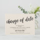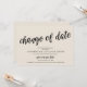 Detta är ett uppskjutet bröllopskort (uppskjutande), med kortets titel, Ändring av datum, i svart scriptfont, modern rustik design med krämtema.
