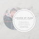 Ändring av planer, enkel text, grå och vit kort med ett foto på baksidan. Låt dina gäster veta att ert bröllop eller annat evenemang har ställts in eller skjutits upp på grund av oförutsedda omständigheter.