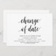 Ändra datum kort. Detta är bröllops inbjudan Återanmälan (uppskjuten / uppskov) kort (Ändra datum), i modern minimal enkel ren design tema, Svart teckensnitt.