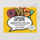 Anpassa med dina namn och detaljer för att tillkännage ändringen av datum för ditt speciella evenemang. Modern, rolig retrodesign med serietidningspopkonst-tema, perfekt för bröllop, bröllopsdusch, baby shower, dop, förlovningsfester, årsfiranden, examina, födelsedagsfirande och andra speciella evenemang under hela året! En cool, trendig och rolig design som sätter kraft i din dag. Designad av Thisisnotme©