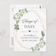 Mall för uppskjutet meddelande om händelse - ändring av postkort för geometriskt eukalyptus Löv.