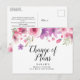 Ett vackert ändringskort kan anpassas med din uppdaterade information. Baksidan har ytterligare detaljer, inklusive din webbplats, med din returadress och utrymme för mottagarens adress. Perfekt för bröllop, brud shower, baby shower, dop, förlovningsfester, årsdagar, examen, födelsedagsfiranden och andra speciella evenemang under året! Designad av Thisisnotme