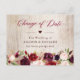 Eventuellt uppskjutande - Meddelande Mall - Rustik Trä Burgunderröd Rosig Blommig Ändring av datum Postkort.
