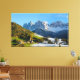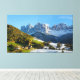 Canvas landcape avger en fotoshop-bild som består av två foton som tagits med 2 dagars mellanrum och som visar att säsongen ändras från höst till vinter. Byn är St Magdalena (Santa Maddalena) i Funes Valley i Sydtyrolen, Italien med bergen Odle Dolomites i bakgrunden.