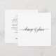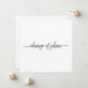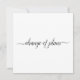 Detta eleganta kort är designat för att hålla dina gäster informerade om du tyvärr måste ställa in eller flytta ditt bröllop. Den enkla svart-vita designen har ett kalligrafiskt tryck som lyder "ändring av planer" på framsidan och utrymme för en personlig notis och signatur på baksidan.