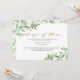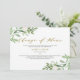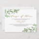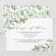 Ändra planer! Meddela din familj och vänner om ditt bröllopsuppskov med detta gröna bröllopskort. Det har vattenfärgillustrationer av grönska, vita blommor och elegant skrift. Personifiera genom att lägga till era namn och andra detaljer. Detta gröna bröllopsuppskovskort kommer också att vara perfekt som ett elopement-meddelande.