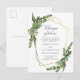 Oj! Oförutsedda omständigheter är svåra att planera för men med dessa postkort för bröllopsannonsering "Ändring Av Planer" kan du låta din kära familj och vänner veta! Denna design har en falsk guldprägling geometrisk kant med vattenfärg botanisk grönska i hörnen. Anpassa med dina egna detaljer genom att klicka på "Personifiera denna mall". Du kan skriva mottagarens detaljer på baksidan för hand.