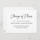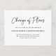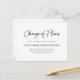 Dessa vykort för elegant och minimalistisk omläggning av bröllop, annullering eller senareläggning har svart, modernt skript som säger "ändrad planering" på ren vit bakgrund. Om du måste ändra eller upphäva datumet för din bröllop eller skjuta upp någon annan speciell händelse är detta ett enkelt sätt att göra det på.