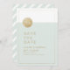 Guld och mint modern enkel minimalistisk utformning, faux guld foil färg-cirkeln tillför lite modernt glam, chic och enkel perfekt för modernt bröllop- eller strandbröllop under sommaren. Om du vill ändra mint-bakgrunden i färg så att den matchar ditt bröllop-tema klickar du på Anpassa det! och redigerar sedan färg under avsnittet Tryckt bakgrund i Färg. Anpassningsbar din egen spara datumkortet för din bröllopsinbjudan. Se alla matchande delara i insamlingen "Färg editable modern minimalistisk design" nedan.