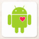 Androidrobotsymbol med en hjärta underlägg papper kvadrat