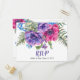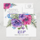 Akvarell anemoneblomma blommande bröllops-svar postkort. Detta akvarell anemone bröllops-svar postkort är ett bra val för ett sommarbröllop eller ett vårbröllop. Detta färgglada anemoneblomma bröllops-svar postkort har vackra akvarell lila, rosa, blå anemone ihop med blå förgätmigej blommor och gröna ormbunksblad. Detta anemone bröllops-svar postkort har ett ljust, djärvt, färgglatt blomsterutseende.