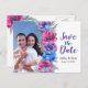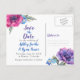 Anemon glöm mig ej blommig foto bröllop save the date vykort. Denna akvarell anemone foto mall bröllop save the date vykort är ett bra val för ett sommarbröllop eller ett vårbröllop. Detta färgrika anemon blomma bröllop save the date vykort har vackra akvarell rosa, lila och blå anemon blommor i kombination med blå glöm-mig-ej blommor och gröna ormbunksblad. Detta anemon bröllop foto save the date vykort har en djärv, ljus, färgrik blombukett look.