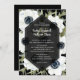 Elegant svart och vit anemonblomma och löv vattenfärg på svart bakgrund, bröllop-ceremonin i chic vit text på ett genomskinligt svart diamantindrag. Ändra den svarta basbakgrunden till valfri färg så att den matchar ditt bröllop-tema. SAMORDNA objekt som finns i vår butik för att slutföra inbjudan —> http://bit.ly/2WEA0w5 <—