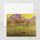 Äng i bergen: Le Mas de Saint-Paul av Vincent van Gogh är en vintage postimpressionistisk landskapsnaturmålning i finkonststil. Ett ensamt träd växer i en åker och en gård finns i fjärran med berg i bakgrunden. En solig sommardag.