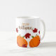 Denna 11 oz vita keramiska mugg kapslar in fallandan, adorberad med invecklade automotiv som löv och pumpor. Den är designad för hållbarhet och värmebevarande, och säkerställer att dryckerna förblir varma och har en sjudande utskrift av falldesignen. Det är idealiskt för att njuta av hett drycker och kan vara personlig med ett namn, skapar det till en tänkbar gåva för olika tillfälle.