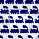 Ångatågmönster - djup marinblått och vit tyg
