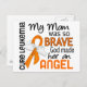 Om du vill se den här designen för fler nära och kära och den fullständiga medvetenheten hos Gift Boutique Collection of exklusiv Leukemia Awareness and Support Design, besöker du vår Leukemia-avdelning i Honor och minns ditt mamma som modigt kämpade mot Leukemia med mamma så Modiga t-shirts, varor och gåvor med kontrasterande text typsnitt och en öga-fångstande orange Leukemi Information om ukemi-medvetandehöjande band med fladtering Angel vingar.Upphovsrättsmeddelande: Observera att Awareness Gift Boutique har upphovsrätten till denna design. Använda eller mångfaldigande utan skriftligt tillstånd är strängt förbjudet. Som överlevande från cancer och sjukdomar och krigare, makar och aktiva anhängare av medvetenhet är vi glada över att kunna stödja olika välgörenhetsorganisationer organisationer och inbjudan till tänka av oss först och främst för alla era behov av kunskap och stöd när det gäller leukemi.