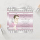Bedårande rosa och grå baby shower inbjudan med ängel babyflicka på en rosa och silvergrå bakgrund och pärlhalsband. Denna söta och eleganta rosa och grå baby shower inbjudan kan enkelt anpassas för din fest genom att lägga till dina detaljer i den typsnitt stil och färg och formulering du väljer. Tryckt design utan faktiska pärlglitterbågar etc.