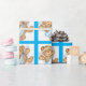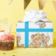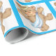 En ängelbjörn med blå bakgrund finns på presenten papprare. Utformning av Perfekten för att omsluta gåvor till babyduschar, nyfödd bebis, barnens födelsedagar och även för nalle och ängel älskare!