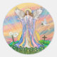 En vacker skyddsängel i pastellhuber belyses av strålarna från det stigning sol. En fredsduva på högerna ovanför ett kristet kor, en symbol för hopp och återuppståndelse.