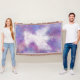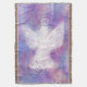 Söt, vit ängel med en fantastisk lila med bågbakgrund.