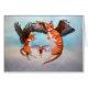 Två tabbar av änglar med hawk vingar spelar jakt med en mus genom molnen.