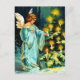 Ett vackert vintage-vykort med en ängel som dekorerar Julgran.