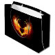 Angel brinner med vingar som flammar på svart bakgrund.