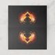 Angel brinner med vingar som flammar på svart bakgrund.